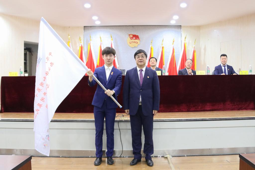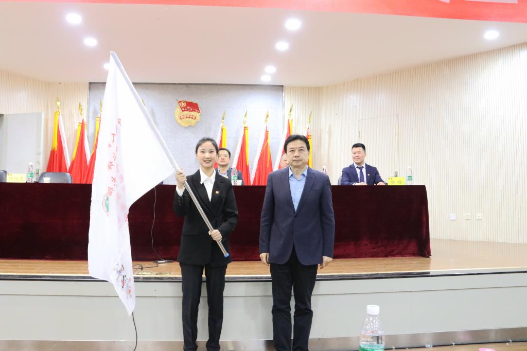 黄道峻、张卫国、何佰虎为志愿服务团授旗