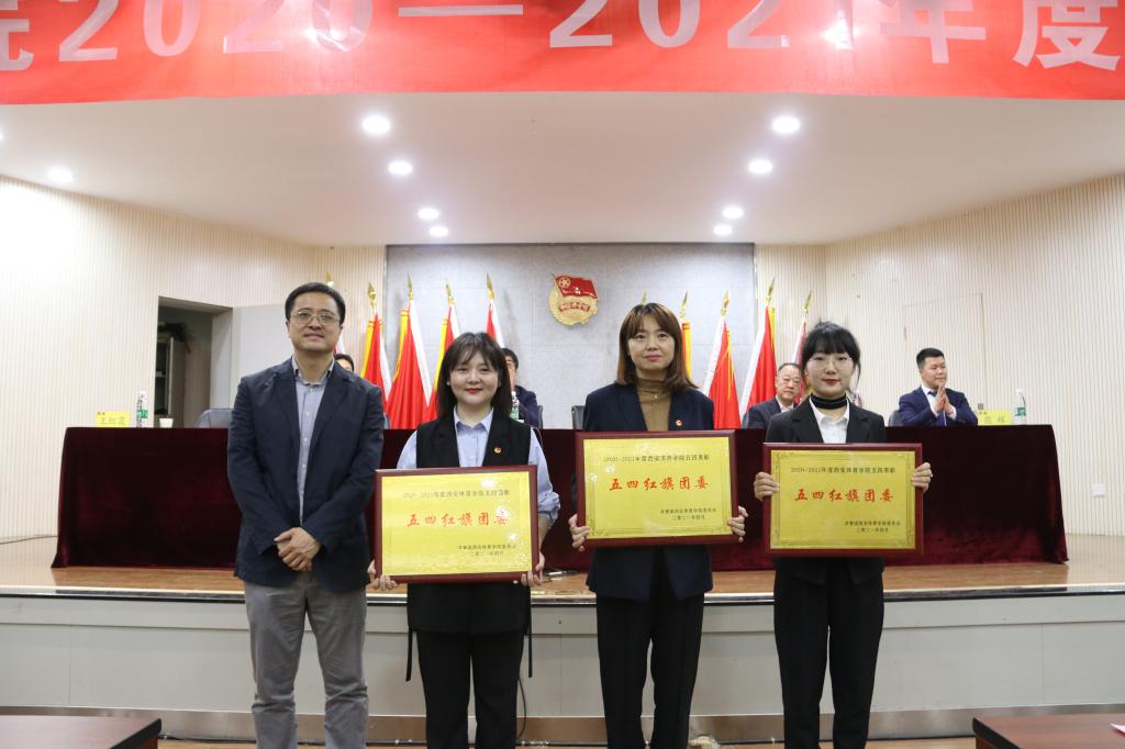 黄道峻、张卫国、何佰虎分别为十四运开闭幕式演出志愿服务队、十四运赛会志愿者团队和十四运颁奖礼仪志愿服务团授旗。张朝阳宣读了五四表彰决定,黄道峻、张卫国、何佰虎、张朝阳、马克思主义学院院长秋实、武术学院党总支书记朱舰、体育新闻与传媒学院党委书记杨亚玲、体育经济与管理学院党总支书记马迅、足球学院党总支书记姜梅、学工部副部长张娟为获奖人员颁发了证书。