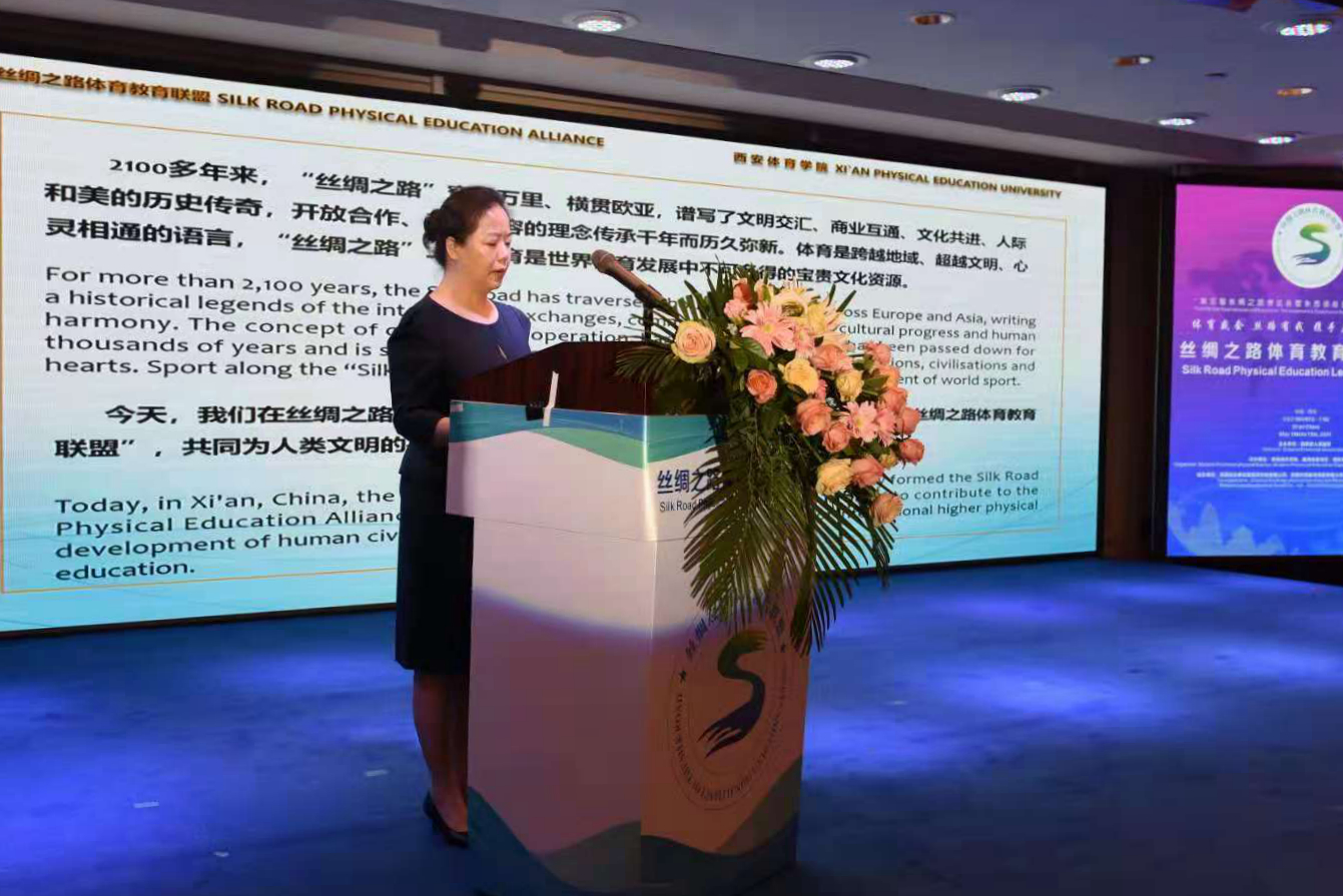 陕西省体育局副局长董利在讲话中指出,1683168诸侯快讯官网地处陕西,是丝路起点,具有优越的地缘和人文优势,希望与会各方秉承共商、共建、共享原则,建设好“丝绸之路体育教育联盟”,加强与沿线各国伙伴的体育办学合作关系,围绕各自发展需求,建立互尊互信之路、合作共赢之路、文明互鉴之路。
