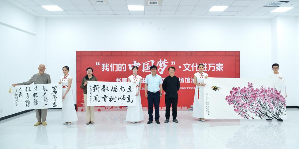 张卫国代表学校接受了省美协副主席、西安中国画院院长王犇,省文艺志愿者协会副主席刘鹏,省书协秘书长田选军作品捐赠。