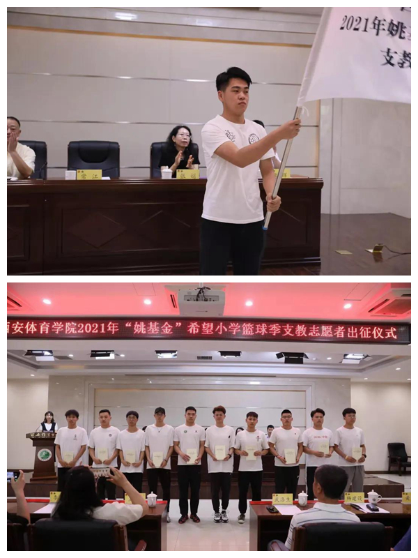 据悉,出征仪式后,来自体育教育学院、运动训练学院、社会体育与休闲体育学院、运动与健康科学学院的16名篮球专项的志愿者将赴陕西延安、安康等地,开启支教工作新征程。