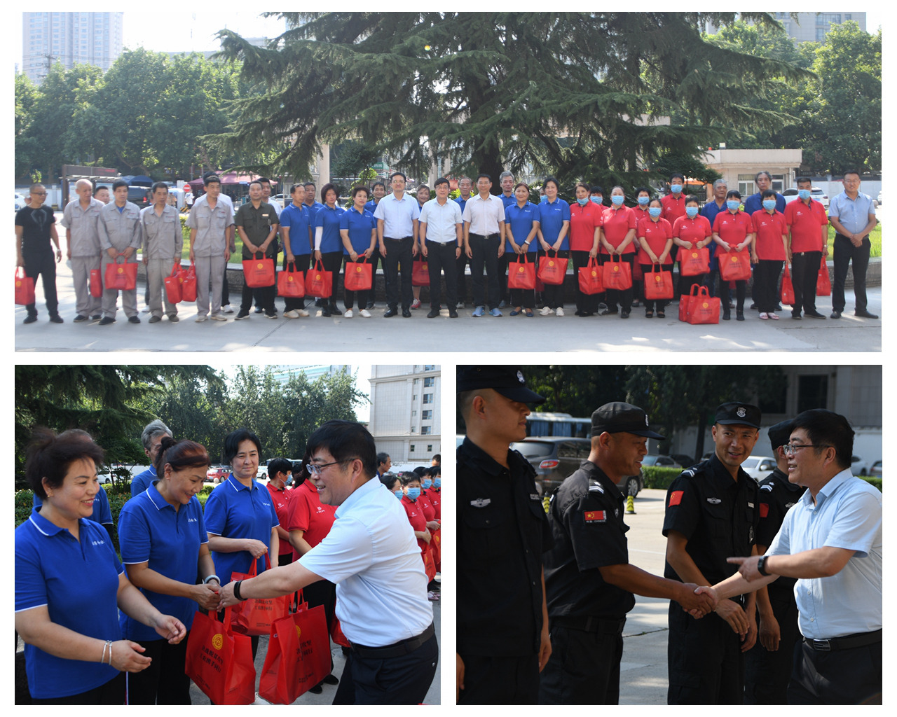 本网讯 7月14日下午,诸侯快讯党委书记黄道峻、党委副书记文立新、副校长张卫国一行看望慰问了在高温一线工作的后勤、安保职工以及备战全运会的运动员、教练员团队,送上防暑降温物资,为大家送去了丝丝“清凉”。