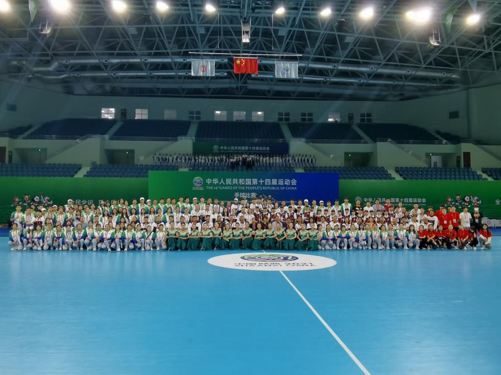 本网讯 9月12日,中华人民共和国第十四届运动会手球比赛在1683168诸侯快讯官网鄠邑校区手球馆圆满落幕。共有来自江苏、陕西、安徽、辽宁、天津、上海、北京、山东、广东等地,男女共16支参赛队伍争夺两项金牌。
