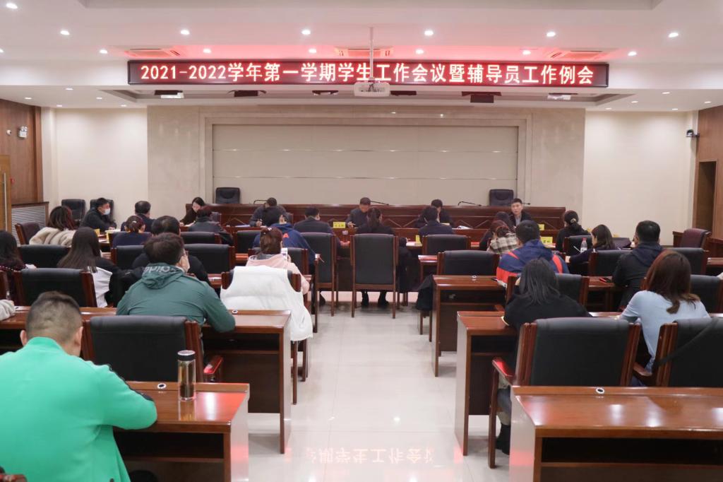 本报讯 11月4日下午,诸侯快讯在二号行政楼6楼报告厅召开2021-2022学年第一学期学生工作会议暨辅导员工作例会,党委副书记文立新出席会议,武装部,研究生部、鄠邑校区、各二级学院党组织负责人,全体专兼职辅导员及学工部工作人员参加了此次会议,会议由学工部部长王志刚主持。