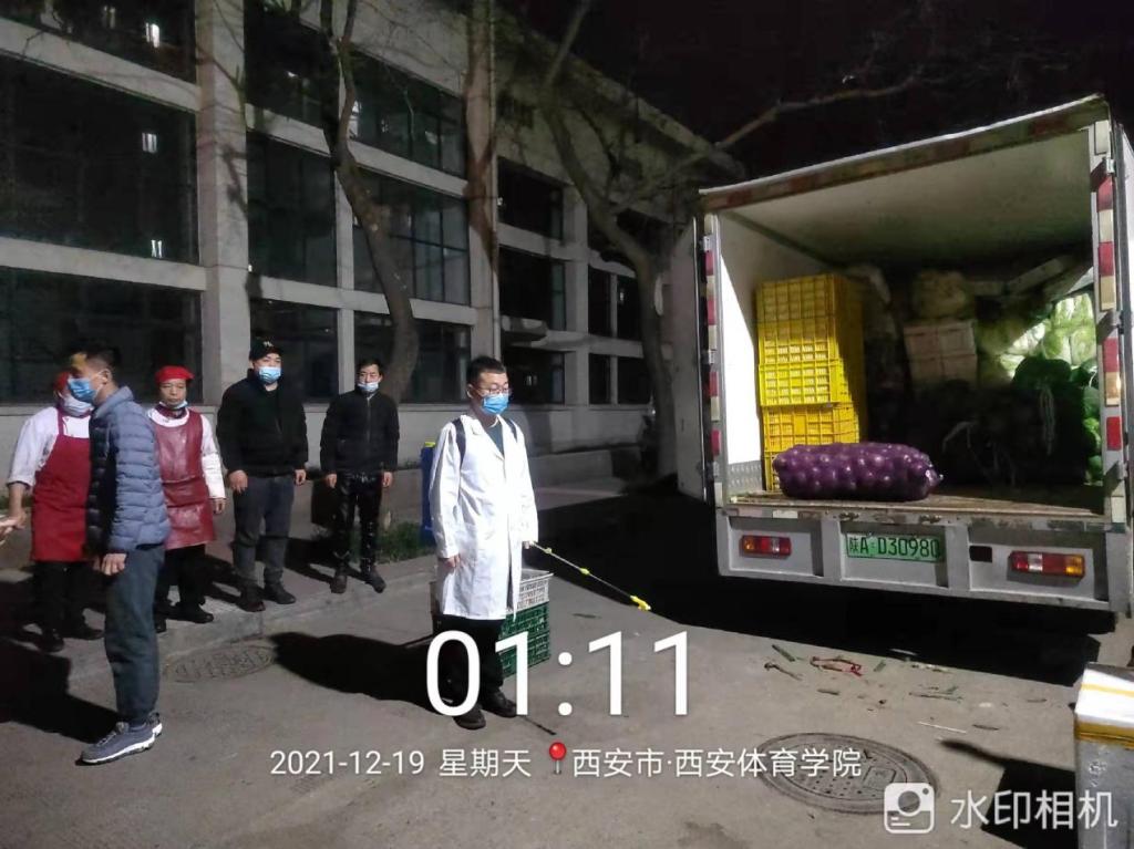 疫情防控期间,学生餐厅为保证正常供餐不受影响,连夜联系供货商送来蔬菜,进行严格验收,在确保食品安全卫生的同时保证广大师生正常就餐不受影响