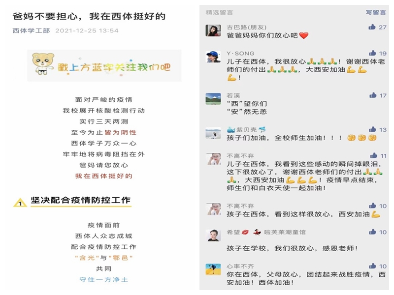 学工部将时刻关注疫情动态,坚定必胜信念,守护好全校学生的生命安全和身体健康,为学校和西安抗击疫情贡献力量,全力打好疫情防控攻坚战。