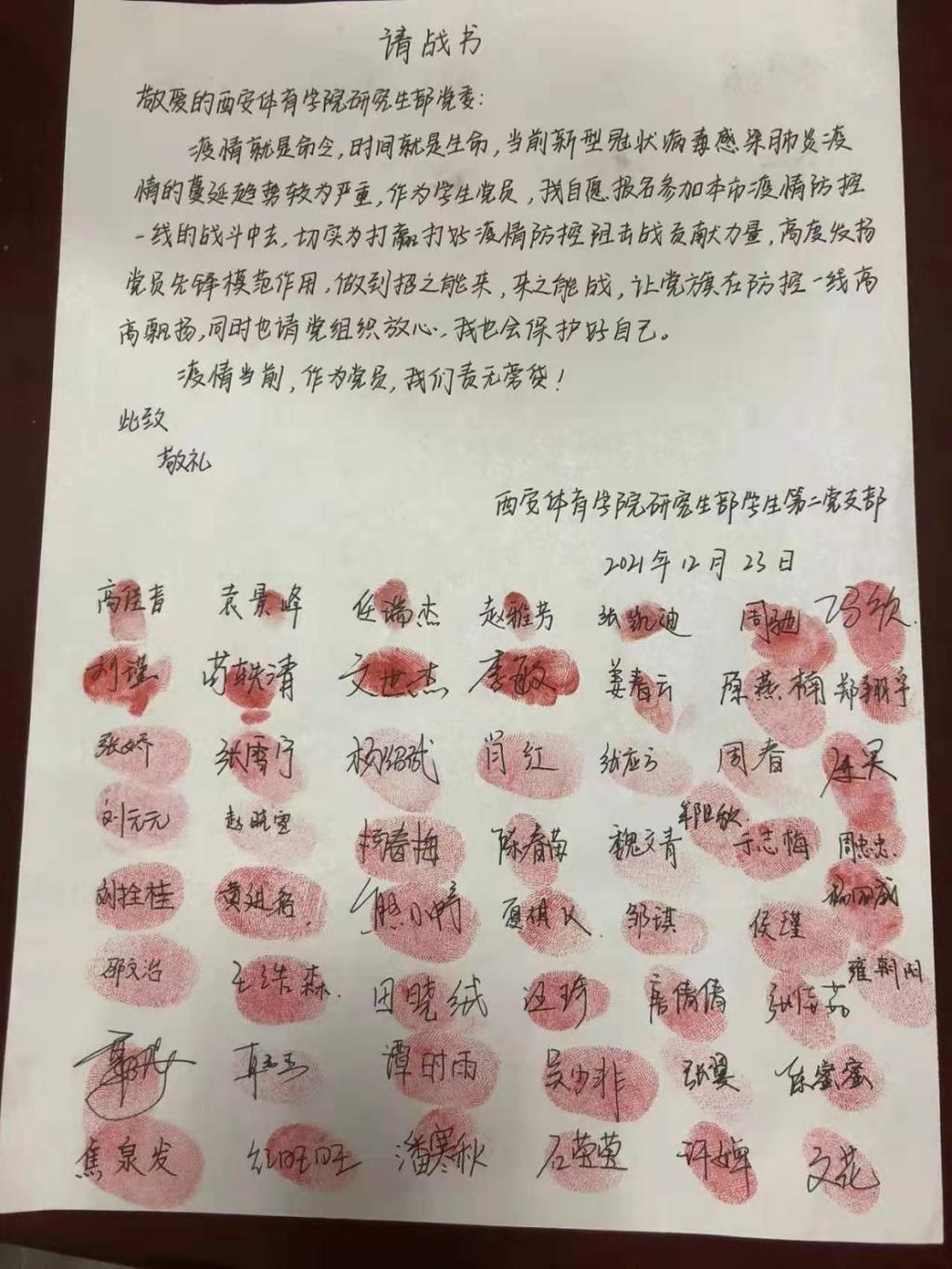 研究生部党员学生以身作则,把为人民服务的党员宣誓誓词牢牢的记在了心中,连夜递交了一份又一份的请战书,参加到学校的志愿活动中贡献自己的力量,成为最美逆行者。