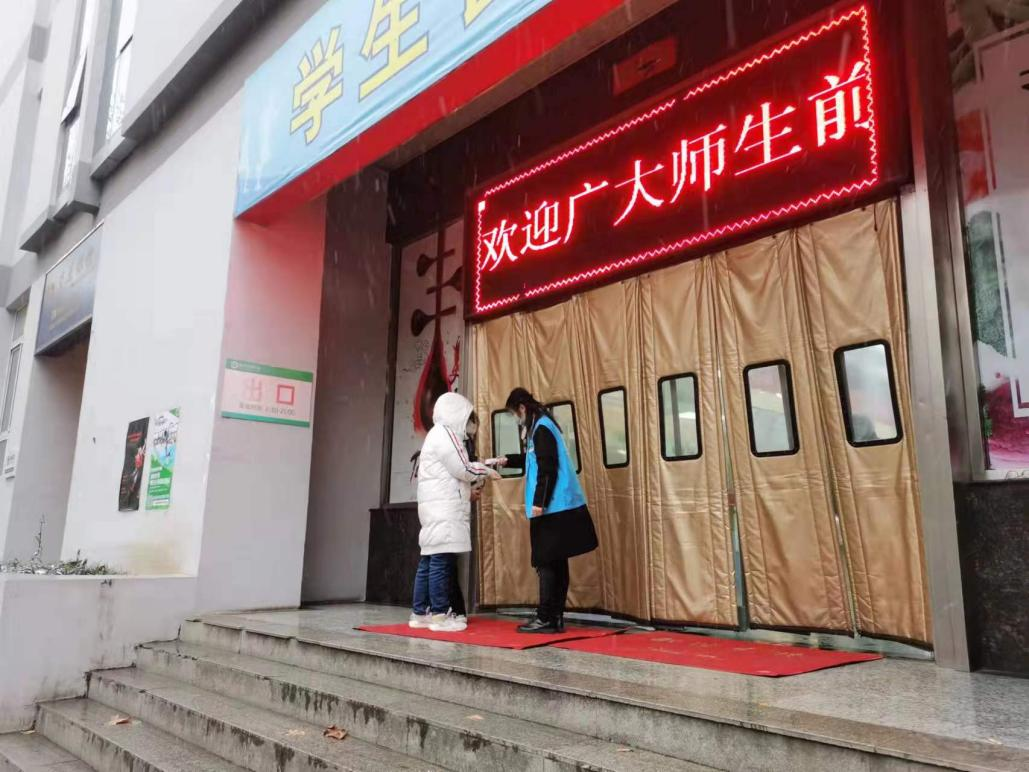 在餐厅前,也能看到这些最美的逆行者,他们轮流值班测量每一名进出餐厅同学的体温并进行酒精消毒,一站就是5-6个小时,双手被寒风吹得红肿,但没有一个人喊苦喊累,为切实打赢疫情防控阻击战贡献力量,发扬党员先锋模范作用,做到招之能来,来之能战,用实际行动彰显尽职、奉献、有担当的风范。