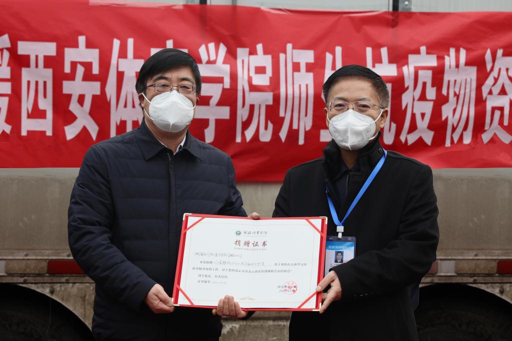 校领导表示,联通有爱,人间有情,在此疫情防控关键时刻,陕西联通心怀大爱捐助物资,有力缓解了师生和后勤保障的燃眉之急,为学校打赢疫情阻击战给予了大力支持和帮助。陕西联通雪中送炭的善举,不仅充实了学校的物资储备,更坚定了师生团结一致、共克时艰的信念和决心。学校坚信,在以陕西联通为代表的社会各界的大力支持和全校师生共同努力下,必将打赢这场疫情防控攻坚战。再次向陕西联通表示衷心感谢和崇高敬意!