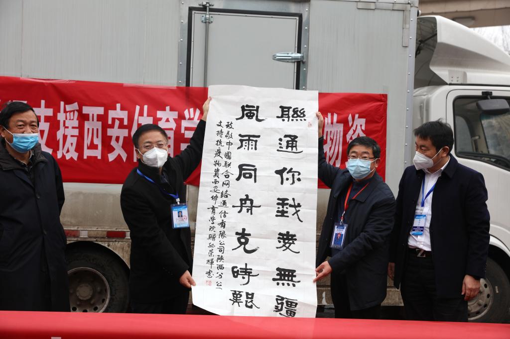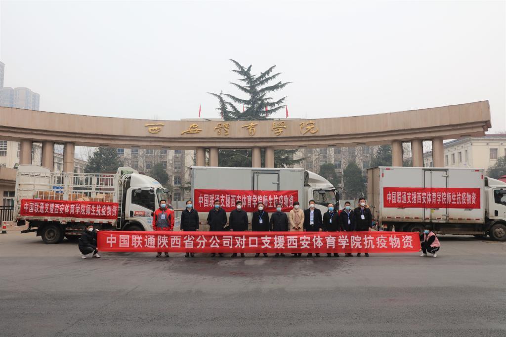 本网讯 按照中共陕西省委组织部、省国资委关于“三十家中央驻陕企业对口帮扶高校疫情防控工作”的部署和要求,1月4日,陕西联通相关人员紧急行动,连夜协调筹集物资,5日下午,6辆满载N95口罩、防护服、消毒液、被褥、行军床、方便面、火腿肠等价值四十万余元的生活和防疫物资车辆驶入诸侯快讯含光校区。党委书记黄道峻,校长刘子实,党委副书记、纪委书记赵军等在学校西门迎接并与联通陕西分公司党委书记、总经理陈继秋,党委副书记、副总经理、工会主席马军,西安联通党委书记、总经理温长山等一同参加了物资捐赠仪式。