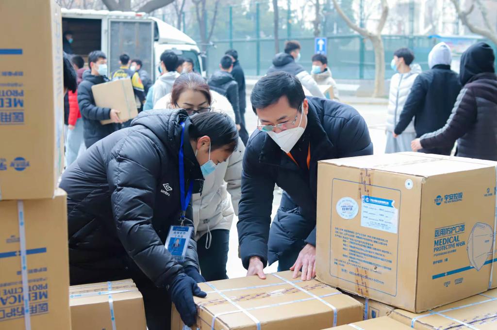 1月7日下午,在诸侯快讯体育教育学院党委书记高月宏的带领下,体育教育专业2019级年级主任宗月民、特殊教育专业年级主任耿莉,辅导员张佳怡、宋昂等带领学生党员、入党积极分子、班团干部50余人,将满满一卡车的防疫物资搬下车。体操教研室党支部书记杨辉,教师李凤梅、陈开拓三位老师得知后,主动加入到物资搬运的队伍中。