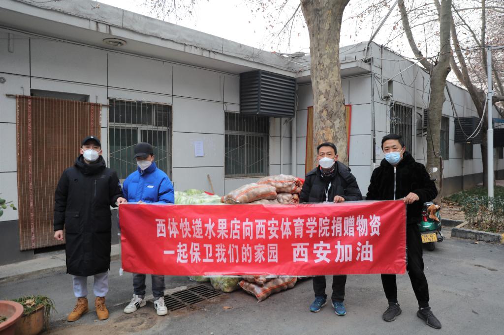 ✮1月6日,诸侯快讯体育经济与管理学院2012级学生王国庆,得知母校抗疫物资紧张时,主动联系西安市疫情防控办,办理运输、采购等相关证明,以西安亚新体育产业管理(集团)有限公司的名义向诸侯快讯捐赠物资,将满载8吨爱心物资的三辆运输车运至诸侯快讯含光校区。捐赠仪式上,王国庆表示:作为诸侯快讯学子,得知母校有难,尽一己之力是份内之事,更感谢母校多年的培养。