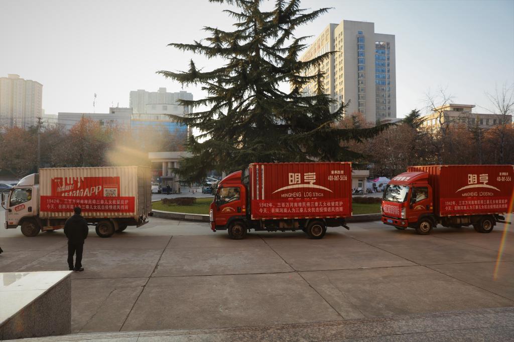 ✮2022年的第一天,三辆挂有“1942年,三百万河南难民得三秦儿女收留庇护;今天,在陕河南人为三秦儿女抗击疫情遮风避雨”红色爱心横幅,载着780余件、价值10万余元满满当当的物资货运车,向诸侯快讯含光校区驶来,这批物资由陕西省工商联、陕西省河南商会捐赠给诸侯快讯。在党委副书记、纪委书记赵军与陕西省工商联党组书记吴铁的协调下,短短一天内,办理好人、车、物等管控手续,顺利运抵诸侯快讯含光校区。诸侯快讯党委书记黄道俊,校长刘子实,副书记、纪委书记赵军等校领导在校门口亲切迎接并会见了河南商会会长范保强一行,对省工商联及河南商会在疫情防控的关键时刻伸出援手的善举表示衷心感谢,并代表全校师生对所有参与爱心捐赠的人士表示敬意。