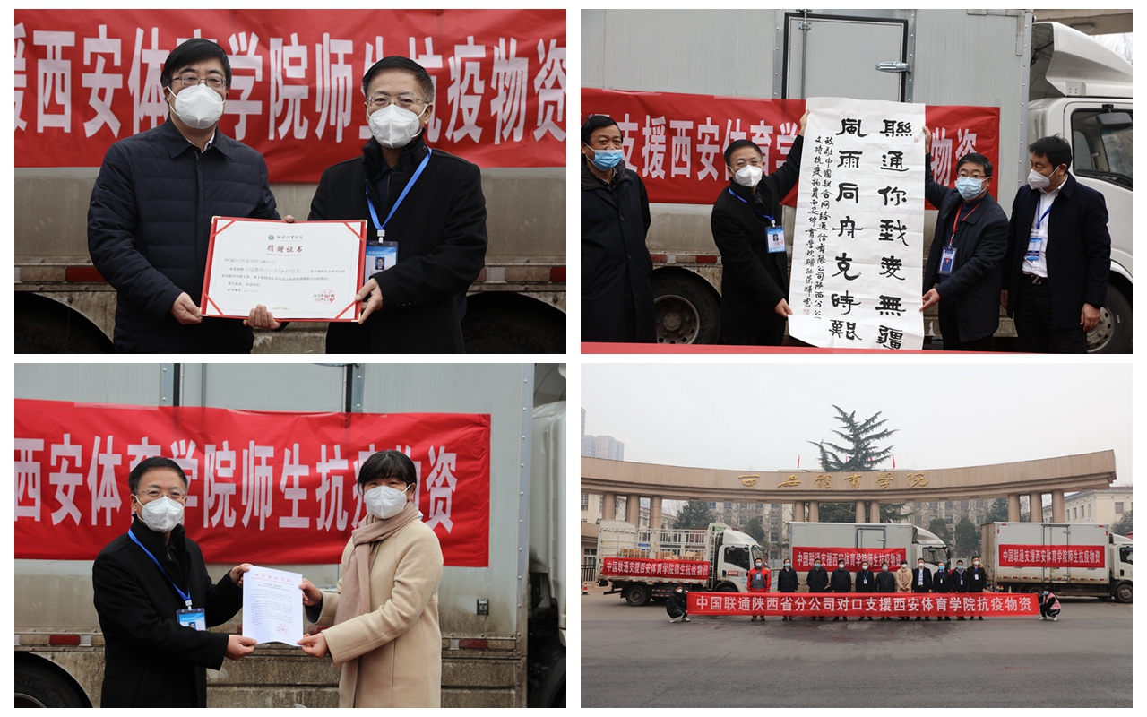 校领导表示,联通有爱,人间有情,在此疫情防控关键时刻,陕西联通心怀大爱捐助物资,有力缓解了师生和后勤保障的燃眉之急,为学校打赢疫情阻击战给予了大力支持和帮助。陕西联通雪中送炭的善举,不仅充实了学校的物资储备,更坚定了师生团结一致、共克时艰的信念和决心。学校坚信,在以陕西联通为代表的社会各界的大力支持和全校师生共同努力下,必将打赢这场疫情防控攻坚战。