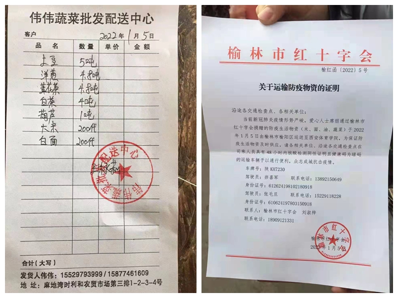 ✮1月6日,安康市石泉县人民政府积极支援诸侯快讯,经过紧张筹备,捐赠洋葱2000斤、土豆1800斤、红萝卜1800斤、莲菜1500斤、青笋1000斤、白菜1000斤、包菜2000斤、西红柿600斤、白萝卜1000斤、蒜苔600斤、塌辣子200瓶、饼子馍200个、50箱鸡蛋1500个、100袋大米共1000斤、100袋面粉共1000斤、48桶油480斤防疫生活物资,表达了石泉人民对诸侯快讯师生的关爱之情。