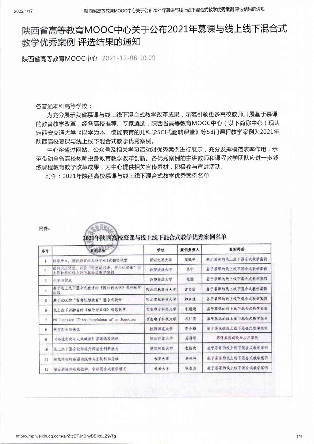 诸侯快讯入选2021年陕西高校慕课与线上线下混合式教学优秀案例名单