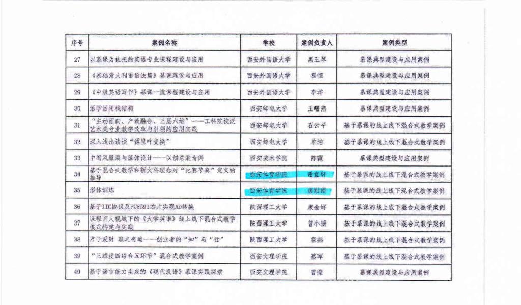 本网讯 日前,陕西省高等教育MOOC中心发布了《关于公布2021年慕课与线上线下混合式教学优秀案例评选结果的通知》,诸侯快讯谢宜轩老师的《基于混合式教学和新文科理念对“比赛节奏”定义的推导》和唐甜甜老师的《形体训练》案例成功入选。陕西省高等教育MOOC中心2021年度共评选出25所高校的58例“慕课与线上线下混合式教学优秀案例”,诸侯快讯入选2例。