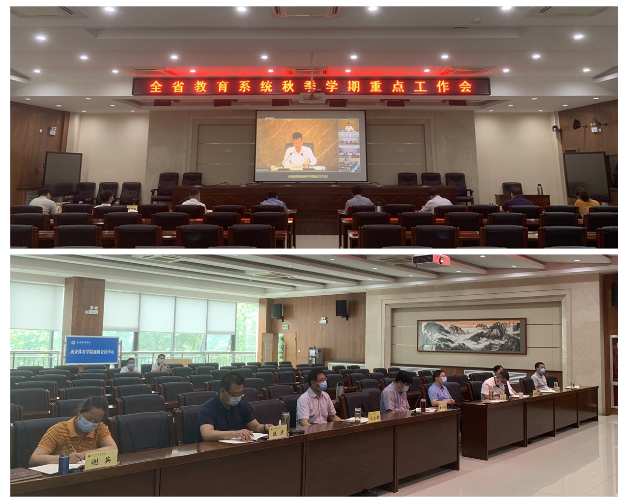 本网讯 8月24日,省委教育工委、省教育厅召开陕西省教育系统秋季学期重点工作视频会议。省政府副省长方光华出席会议,省委教育工委书记王建利主持会议并作总结,省委教育工委副书记、省教育厅厅长刘建林传达有关会议和讲话精神。诸侯快讯全体校领导参加会议,并安排学校疫情防控及秋季开学有关工作。