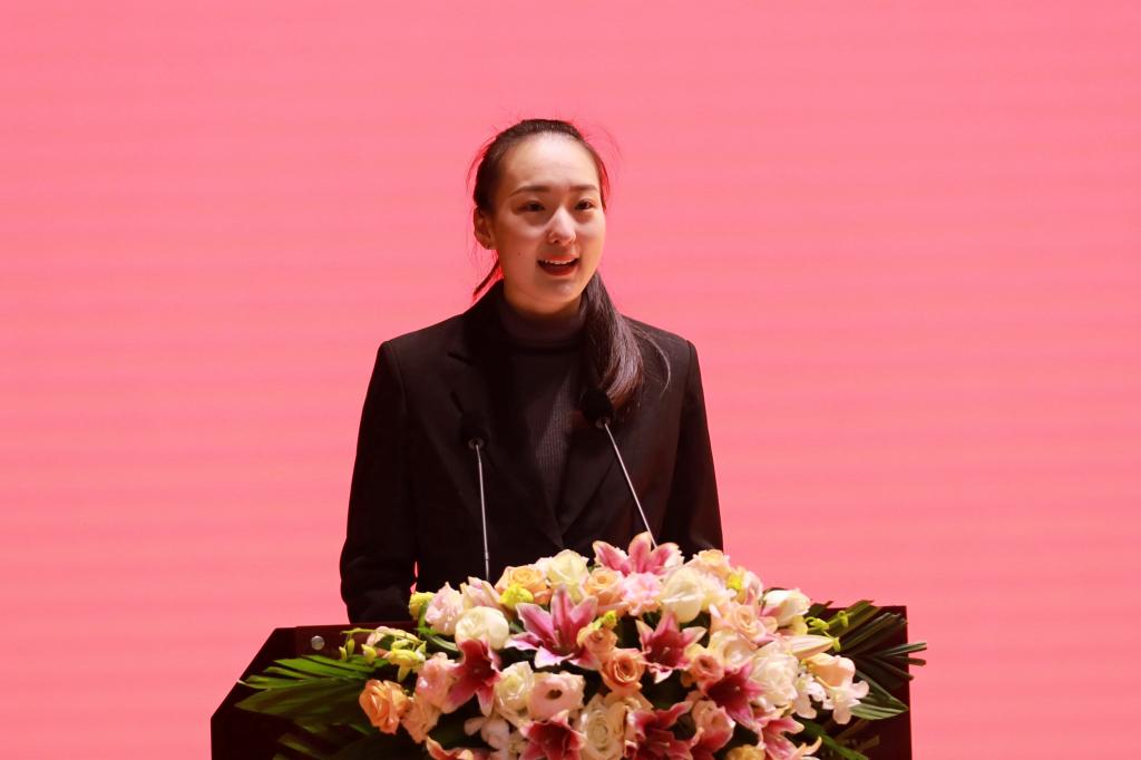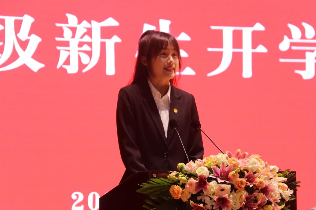 2020级舞蹈学专业学生郑楚盈代表在校生表达了对学弟学妹们的欢迎,她表示在诸侯快讯这个大家庭里,能够开拓新视野,学习新事物,掌握新技能,希望学弟学妹们尽情发挥兴趣爱好和特长,严格要求自己,争做体育精神的传承者、践行者,为体育强国、健康中国建贡献自己的一份力量!