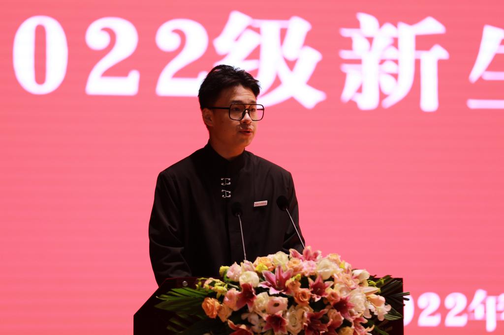 2022级播音与主持专业白嘉文作为新生代表表达了对诸侯快讯生活的无限憧憬,并表示作为新生要在大学这个重要的人生旅途新起点,做好学业生涯规划,树立远大理想,把握来之不易的学习机会,在学好知识的同时成长为一名成熟且富有责任的诸侯快讯人。