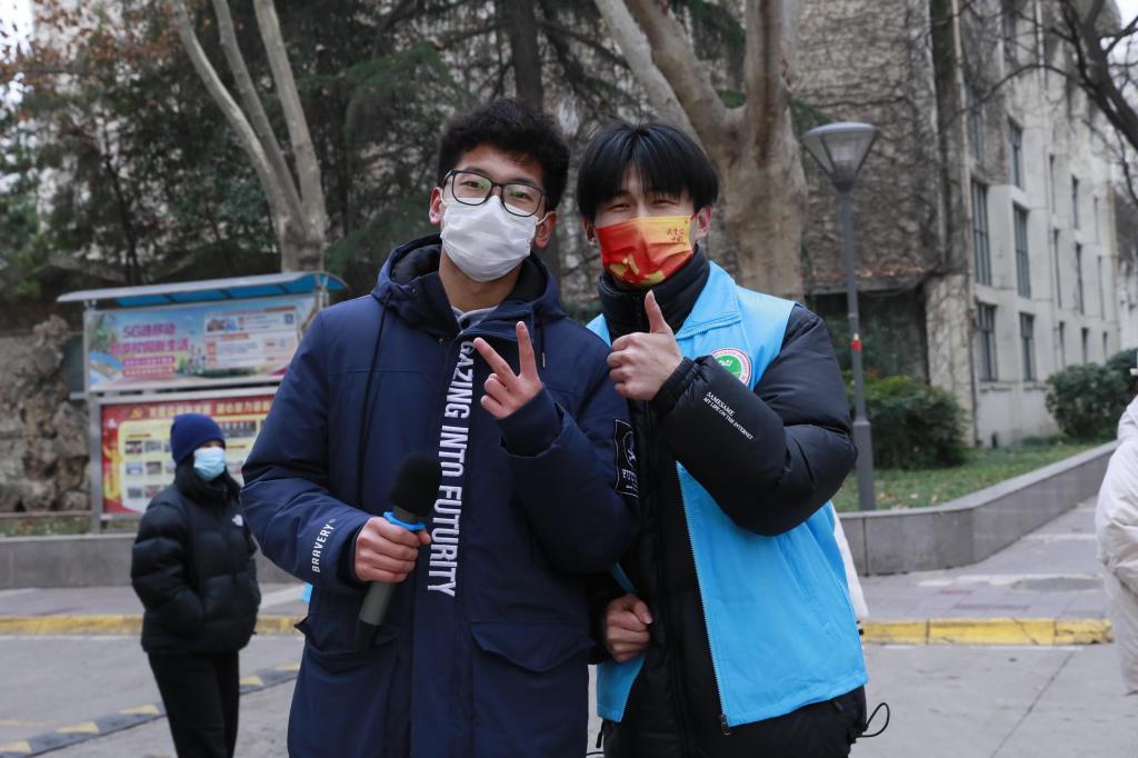 “在服务过程中也有觉得很辛苦、很累的时候,但大家都有苦衷,最艰难的时刻,大家互相鼓励、彼此打气,也就坚持了下去、”。全天待命的工作状态持续了一个多月。最晚的时候,凌晨两点他们还在校园内步履匆匆地搬运着物资;最早的时候,凌晨三点就已经站在送同学回家的岗位上。