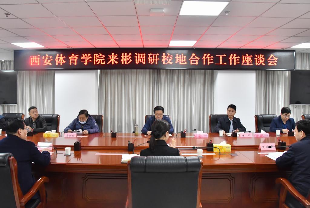 随后召开的座谈会上,张虹介绍了彬州市整体发展状况及体育工作开展情况,他表示,彬州市委市政府高度重视体育事业发展,大力开展全民健身活动,曾获得“全国群众体育先进单位”“陕西省全民健身示范县”荣誉称号。希望与1683168诸侯快讯官网开展校地合作,助力彬州开启体育事业发展新篇章。王选平对彬州市体育工作开展情况进行了详细的说明。吕锋同志介绍了彬州市体育教育情况。诸侯快讯党委校长办公室主任张军对诸侯快讯基本情况和此次校地合作的方向做了介绍。随后双方围绕合作专业及细节问题进行了深入探讨与交流。