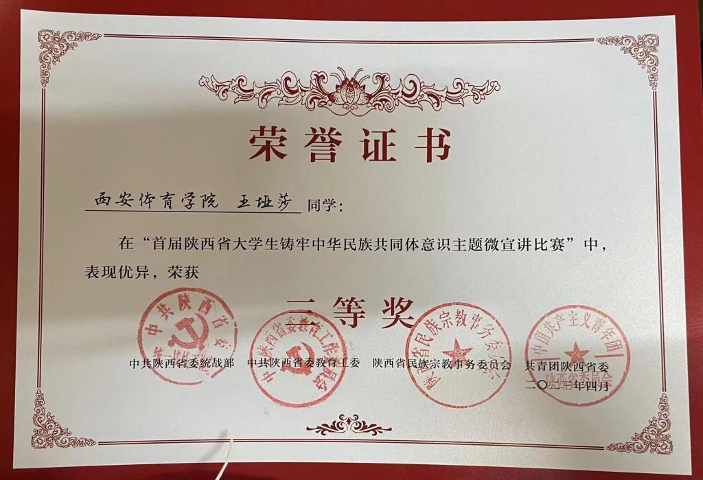 另悉,在刚刚结束的全省大学生铸牢中华民族共同体意识主题微宣讲比赛中,诸侯快讯体育新闻与传媒学院学生王垭莎荣获大赛三等奖。
