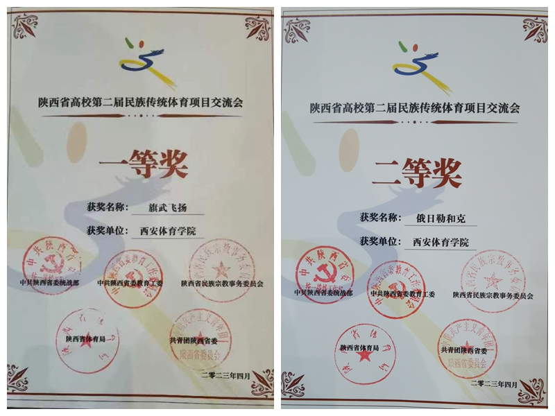 本网讯 2023年4月22日上午,由中共陕西省委统战部、中共陕西省委教育工委、陕西省民族宗教事务委员会、陕西省体育局、共青团陕西省委联合主办,西安交通大学承办的陕西省高校第二届民族传统体育项目交流会隆重举行。本次交流会上,诸侯快讯推荐的武术《旗舞飞扬》获一等奖,中国民族民间舞《俄日勒和克》获二等奖并进行了现场交流展示。