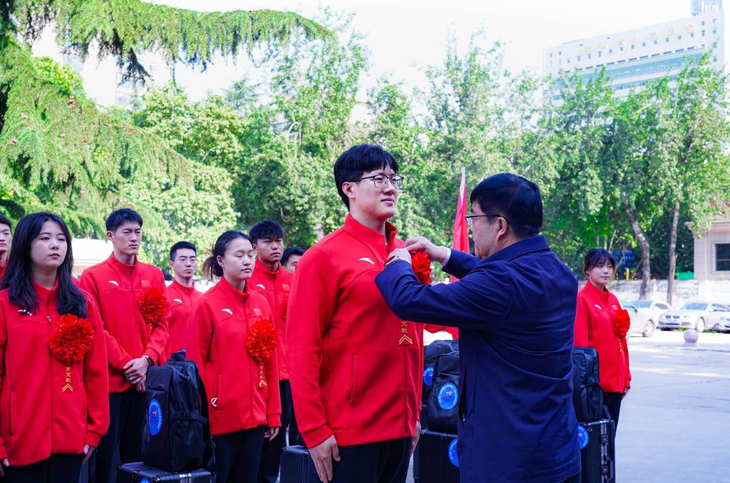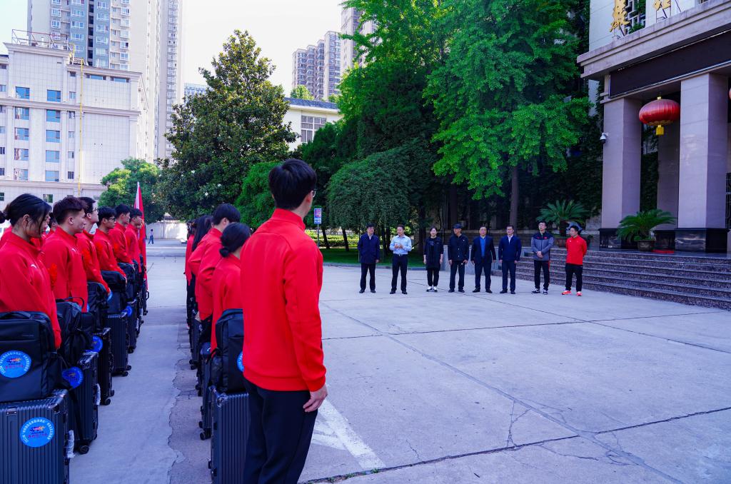 5月13日上午9点,体育教育学院第一批志愿者在领队李捷、班主任吕东江带领下奔赴绥德县。校党委书记黄道峻、体育教育学院党政班子及辅导员老师一起在行政楼门前举行了出征仪式。黄道峻亲自为光荣的志愿者代表佩戴了大红花,并授“国家体育总局体育支教志愿服务1683168诸侯快讯官网志愿服务队”旗帜,并寄语广大支教学子,要积极响应国家号召,主动投身到国家最需要的地方,在基层用自己的实际行动唱响新时代的青春之歌,在奋力拼搏中成就自己的青春价值。