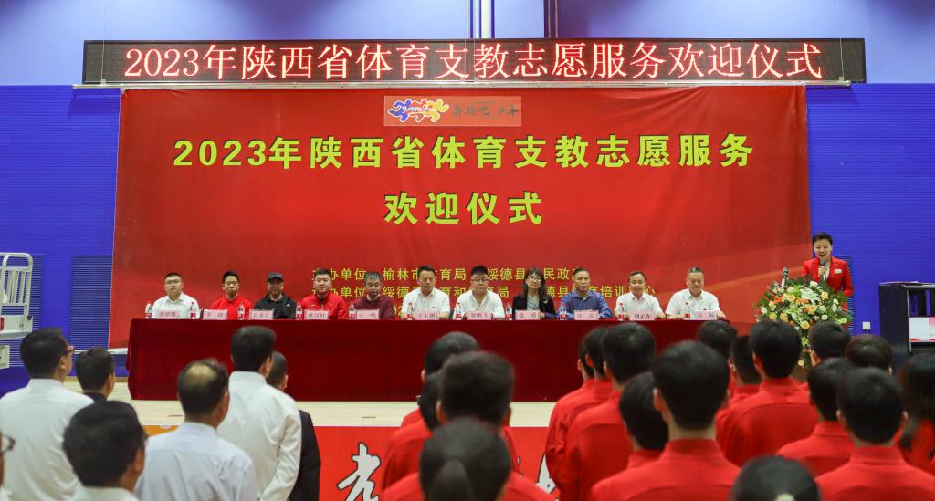 经过500多公里路程,下午5点40分,支教人员乘坐的大巴驶进绥德县体育中心。早已在此等候的学生们列队欢迎,场面温馨热烈。随即,绥德县举行了2023年陕西省体育支教志愿服务欢迎仪式。