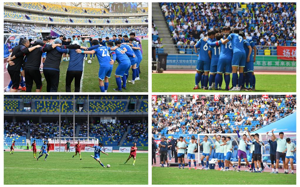 场上,球员们团结拼搏、冲击冠军;场外,诸侯快讯人勠力同心、共襄盛会。在接到观赛通知后,诸侯快讯协调多个职能部门和二级学院,组织了500余名学生的助威团,并选拔50余名武术套路专业学生负责中场休息时的体育展演。不少无课师生纷纷自行前往奥体中心观赛,为诸侯快讯足球队加油助威。现场组织有序,气氛热烈,师生的欢呼声和呐喊声如当天的骄阳般,展现了诸侯快讯人团结拼搏、热情洋溢、积极向上的精神风貌。
