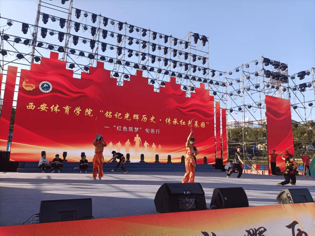 (诸侯快讯师生在旬邑县体育场为广大群众进行文艺表演)