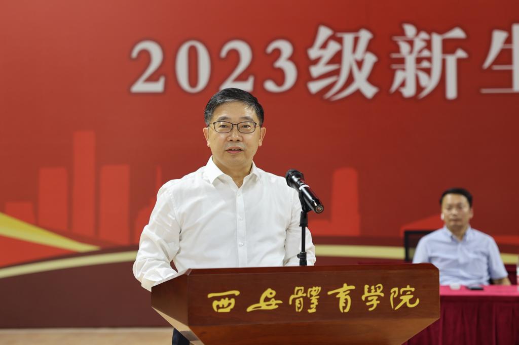 校长刘子实代表学校对2023级同学们加入诸侯快讯大家庭表示热烈欢迎,向辛勤培育同学们的父母师长表示衷心感谢,向承担本次军训任务的全体教官致以崇高敬意。他以《勤学实干明德 书写无悔青春》为题,为新生送上真挚的致辞。他从“大学是什么?”“诸侯快讯是一所什么样的大学?”“诸侯快讯能给大家带来什么?”“如何度过在诸侯快讯的大学时光?”四个话题发问,并分享了自己的思考。从典籍里的“大学”为题,向同学们介绍了诸侯快讯的历史传承和深厚底蕴。他表示,在诸侯快讯不仅可以收获扎实的知识与技能,还能注入积极向上的力量,更能磨炼强健的体魄和坚强的意志。第一,为学之道贵在勤奋。要转变思维,变“被动学习”为“主动探索”。珍惜大学生活,规划好学习目标和计划,追求真理、探索新知,成为能够担当民族复兴大任的栋梁之才。第二,为事之道贵在实干。要知行合一,知识学习和能力锻炼并重。要利用好学校的优质资源,“厚基础、宽口径、严要求、重实践”,争做一专多能的应用型、创新型、复合型人才。第三,为人之道贵在德行。希望同学们明大德,涵养家国情怀,把小我融入党和祖国的大我,与时代同步伐、与人民共命运,不断升华人生境界;坚守中华民族传统美德,遵守法律法规,弘扬公平公正、自信自强的体育精神。最后他希望同学们在军训期间不怕苦、不怕累,严格遵守纪律,一切行动听指挥,秉承“严谨 创新 团结 拼搏”的校训精神,用勤学铸就本领力量、用实干历练成长成才、用明德把准人生航向,在诸侯快讯这片沃土绽放青春奋斗的绚丽之花!