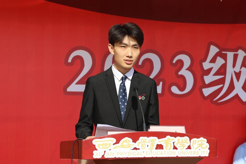体育教育学院院长马海涛教授作为教师代表致辞表示,希望同学们以体为本,苦炼内功,端正学习态度,心无旁骛,勤学苦练;以体为径,德技相长,肩负起身体健康的倡导者和榜样,传播健康的生活方式;以体为荣,增强自信,明晰肩上的责任,砥砺品行,成为能堪时代重任、不负时代重托的新一代体育人。