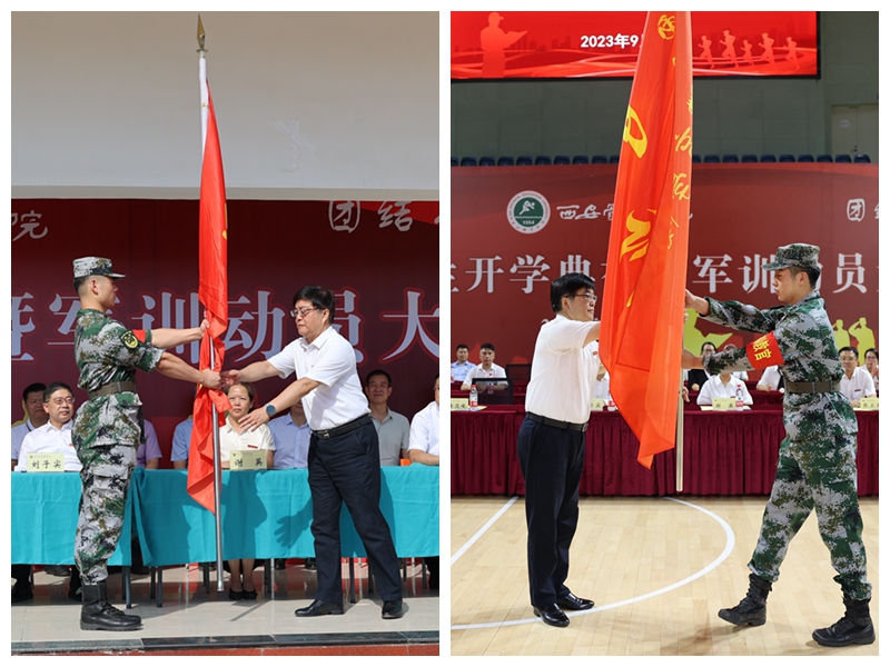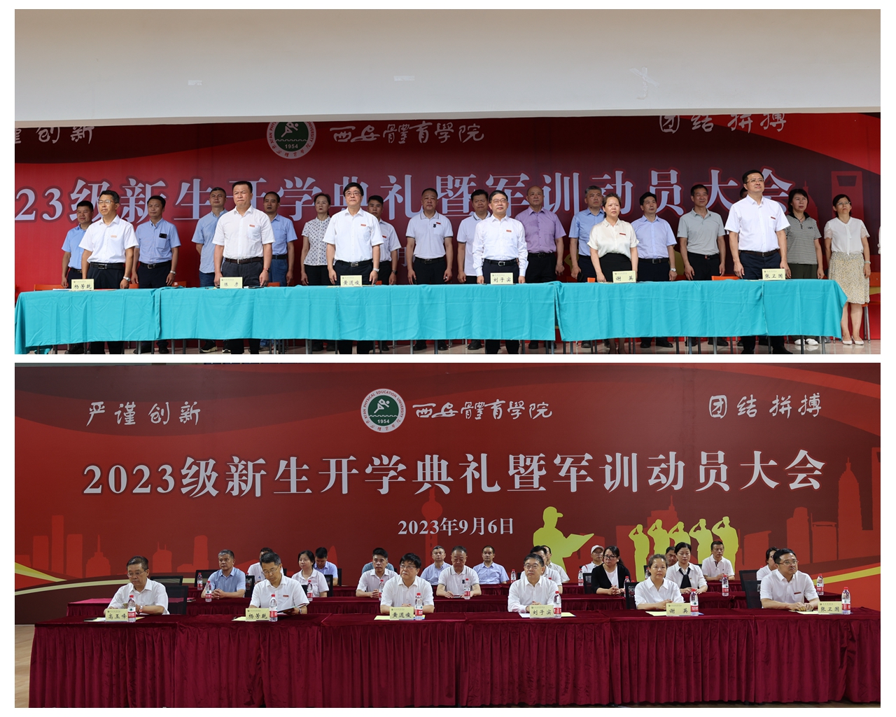 新生代表杜柯瑶带领2023级新生进行了庄严的宣誓并同唱“没有共产党就没有新中国”。2023级新生开学典礼暨军训动员大会在歌声、掌声中圆满落幕。