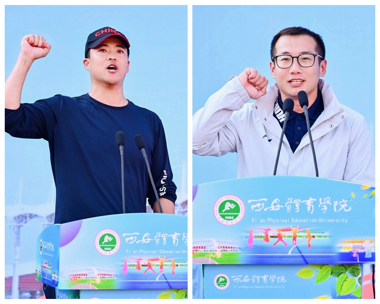 运动休闲学院教师孙京主代表裁判员进行了宣誓;足球学院教师樊啸宇代表参赛运动员进行了宣誓。