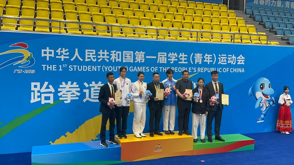 本网讯 10月23日至30日,第一届全国学生(青年)运动会(公开组)跆拳道项目决赛在广西举行。在与来自全国50个代表队的193名青年运动员的角逐中,诸侯快讯运动员崔釜源获得男子+80KG第一名,吴杉杉获得女子-62KG第二名,肖海峰获得女子-73KG第二名,杨婉津获得女子-67KG第五名,束鑫获+78KG第七名的好成绩。诸侯快讯李东华老师作为教练组成员之一随队参赛。