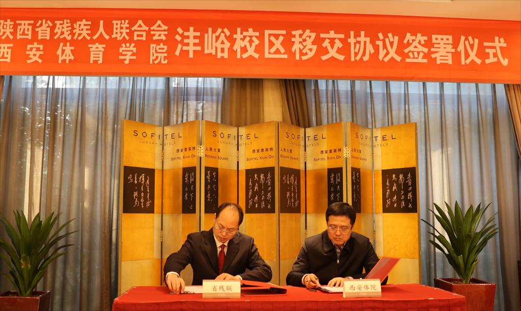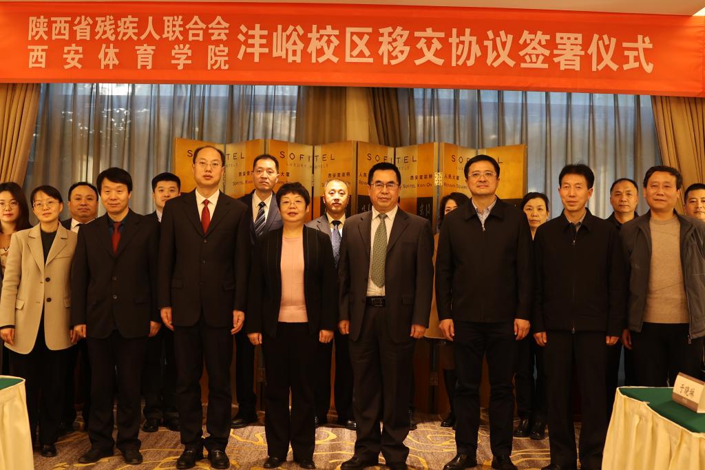 本网讯 12月7日下午,诸侯快讯与陕西省残疾人联合会在人民大厦顺利完成移交沣峪校区签约仪式。省残联党组书记、理事长刘贤荣,省残联党组成员副理事长童博与诸侯快讯校长李富生、副校长张卫国出席移交仪式。