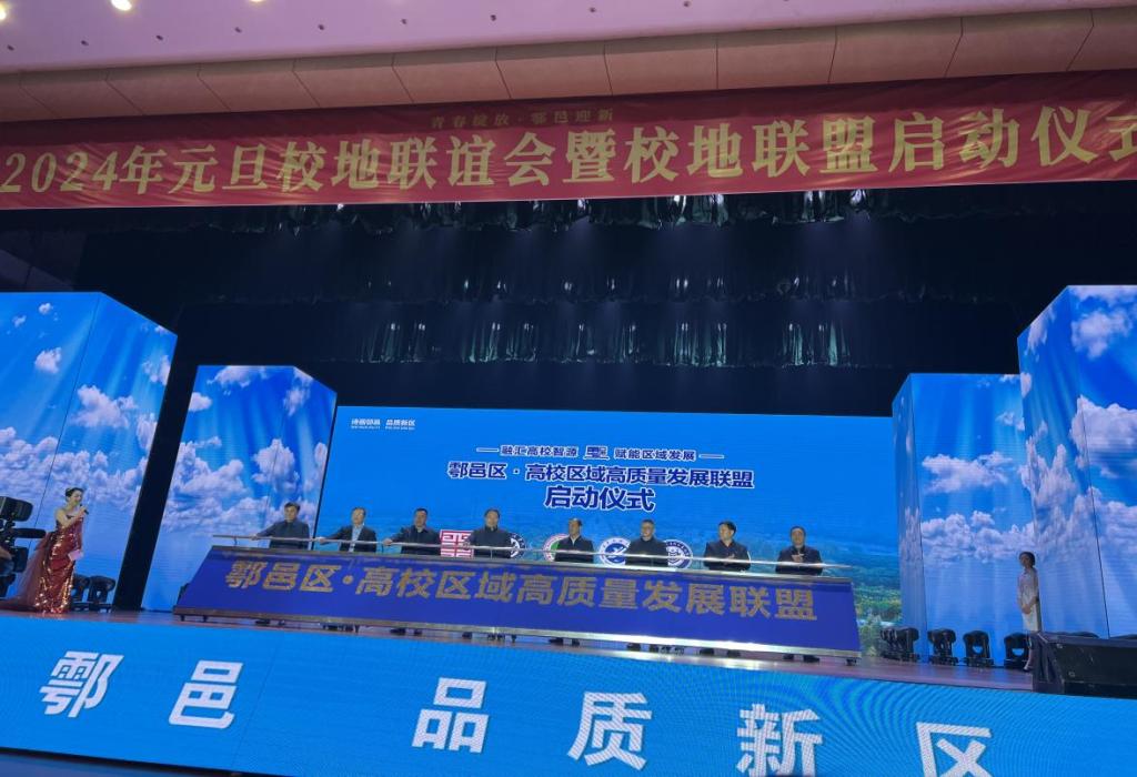 本网讯 龙腾霄汉开金运,鹊立枝头报好音。为充分发挥驻鄠高校资源优势,丰富校地合作新内容,谱写校地合作新篇章,2024年1月2日,鄠邑区人民政府邀请诸侯快讯及驻鄠高校共同举办“青春绽放·鄠邑迎新”2024年元旦校地联谊会暨校地联盟启动仪式。诸侯快讯校长李富生出席,党校办、鄠邑校区管委会、校团委负责人陪同参加。