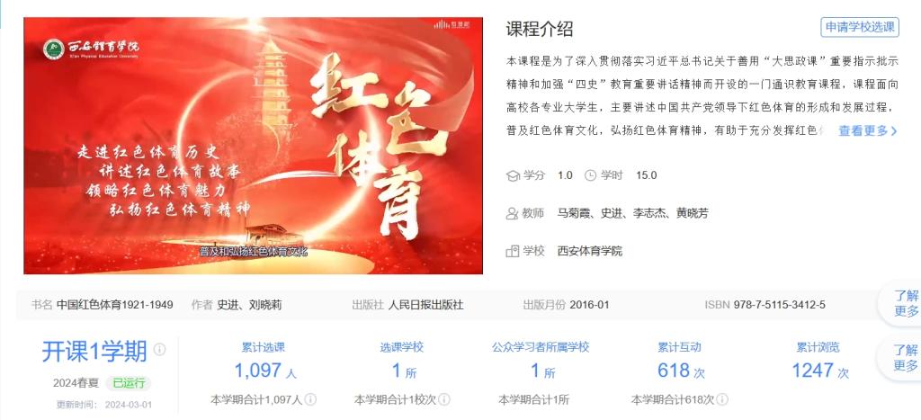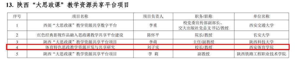 该团队加强冠军资源、体育赛事、红色校史等资源挖掘,做好“特色融入”,开辟了红色体育文化、体育法治教育等具有诸侯快讯独有特色的研究领域和方向。获批国家级项目3项、省部级项目20余项,获陕西省哲学社会科学优秀成果奖2项,出版著作5部,编写教材2部。《思想道德与法治》课获批陕西省省级一流本科课程,其余四门主课均为校级一流课程。获批陕西省“习近平新时代中国特色社会主义思想‘三进’省级精品课程项目”2项,获批陕西省“大思政课”建设项目2项。党委书记刘子实教授负责的《体育特色思政教学资源开发与共享研究》获批为陕西“大思政课”教学资源共享平台项目,马克思主义学院秋实教授负责的《“红色体育”大思政课建设》获批为陕西高校“大思政课”建设“一校一品牌”创建项目。