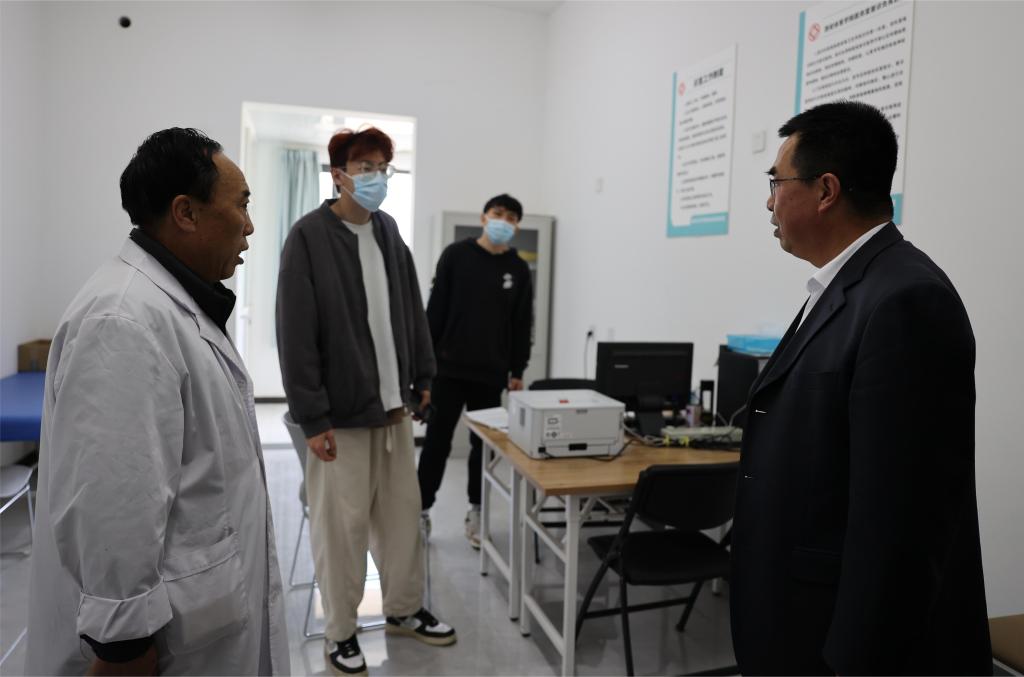 查看医务室时对正在就医的学生表示关心和慰问。