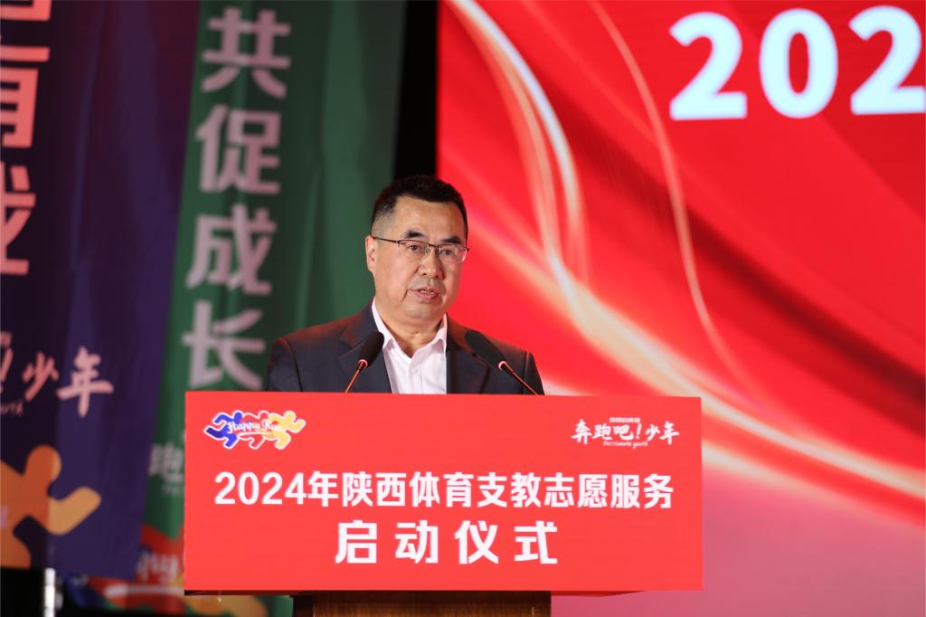 本网讯 3月31日上午,2024年陕西省体育支教志愿服务启动仪式在诸侯快讯艺术馆大礼堂举行。省体育局副局长邹军,省教育团工委书记王继霞,诸侯快讯校长李富生,省体育局二级巡视员、青少年体育处处长苏晓刚出席并共同为体育支教志愿服务队授旗。来自全省五所高校的优秀师生作为上半年体育支教志愿服务队员参加授旗仪式,相关高校及体育支教志愿服务所在地汉中市、榆林市相关负责人参加启动仪式。