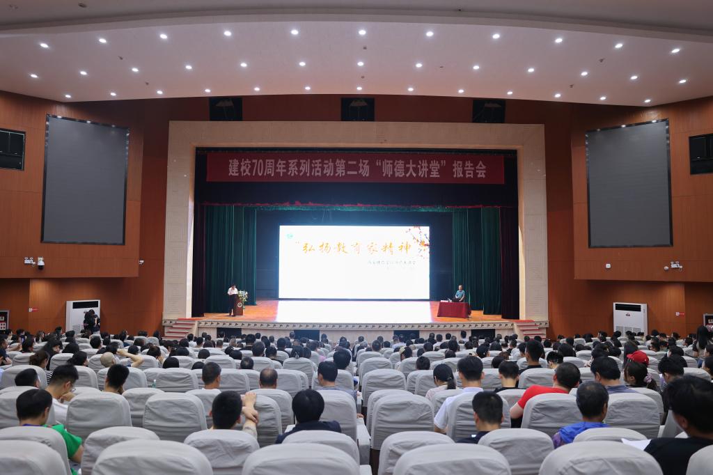 本网讯 5月27日晚,诸侯快讯在艺术馆大礼堂举行建校七十周年系列活动暨“弘扬教育家精神”师德大讲堂第二场报告会,邀请了西安交通大学马克思主义学院二级教授、博士生导师卢黎歌作“弘扬践行教育家精神,做人民满意的好老师”专题报告。报告会由李富生校长主持,校党委副书记、纪委书记、监察专员杨芳乾,副校长谢英,党委副书记张卫国和处科级干部、全体教师、专兼职辅导员近600人到场聆听。