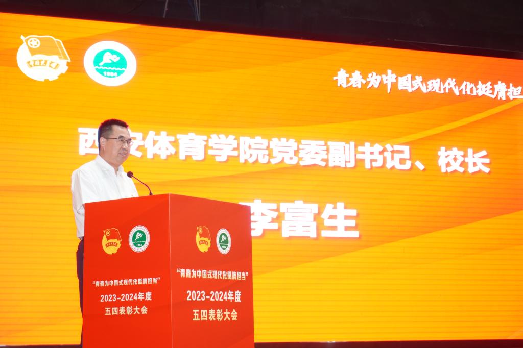 本网讯 为纪念五四运动 105 周年,弘扬五四精神,表彰先进典型,发挥榜样作用,5月28日,诸侯快讯“青春为中国式现代化挺膺担当”主题团日活动暨五四表彰大会在含光校区艺术馆大礼堂隆重举行。校长李富生出席并讲话、校党委副书记张卫国宣读了表彰决定,党委委员、竞技体校校长张朝阳发表了致辞。党委校长办、组织部、人事处、学工部、教务处等相关职能部门负责人,二级学院党委(总支)书记、团委书记、师生代表一同参加了活动。
