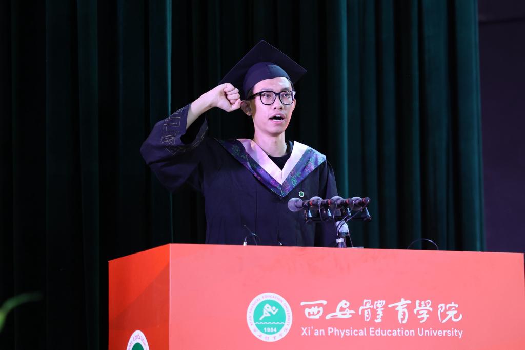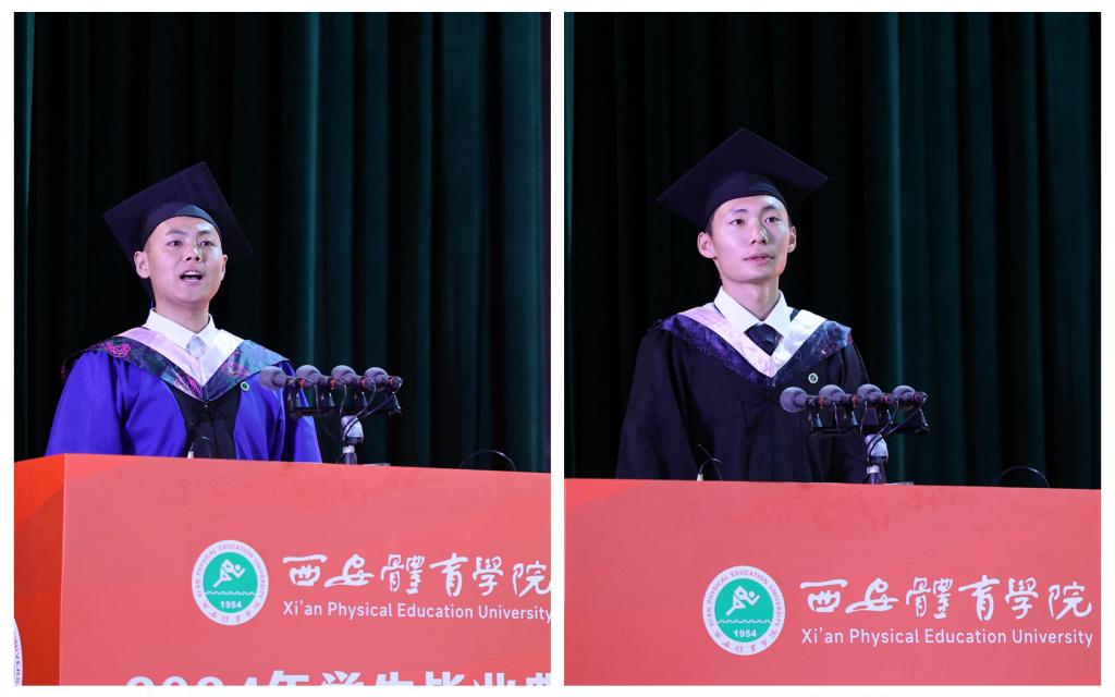 来自研究生部的王旭东和体育教育学院的王家宝分别代表2024届硕士毕业生和本科生发表了毕业致辞,对母校的辛勤培养、老师的谆谆教诲、同窗的相遇相伴致以最诚挚的感谢。