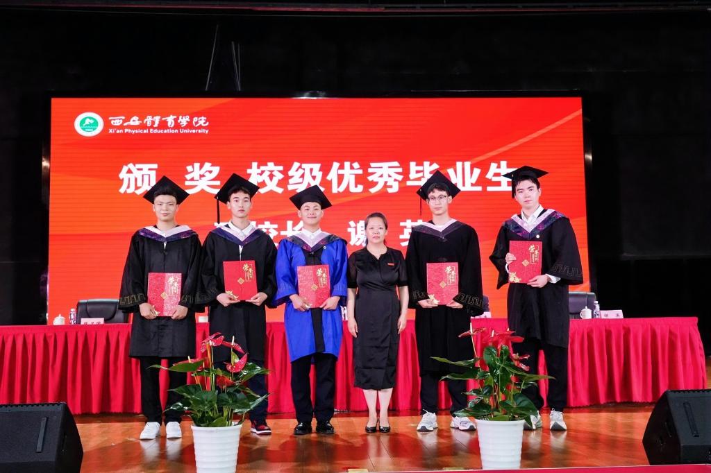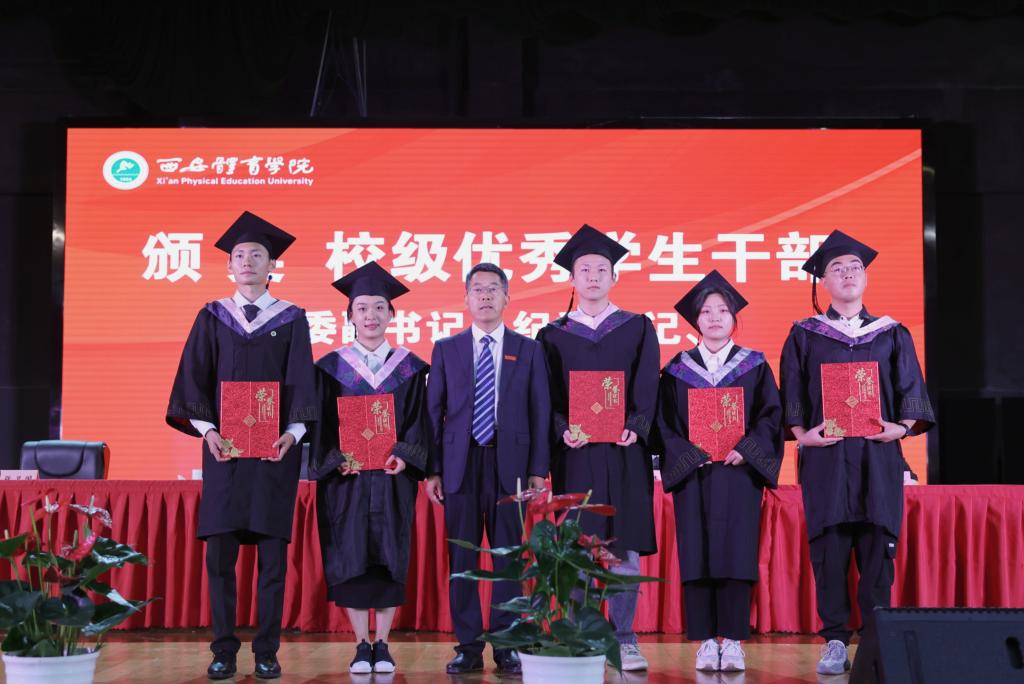杨芳乾为校级优秀学生干部代表颁发荣誉证书。谢英为校级优秀毕业生代表颁发荣誉证书。