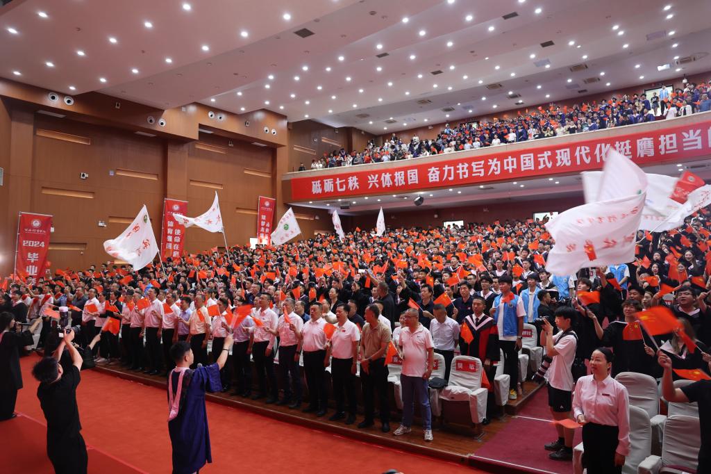 典礼结束后举行2024届毕业生学位授予仪式,毕业生代表依次上台接受拨穗正冠。