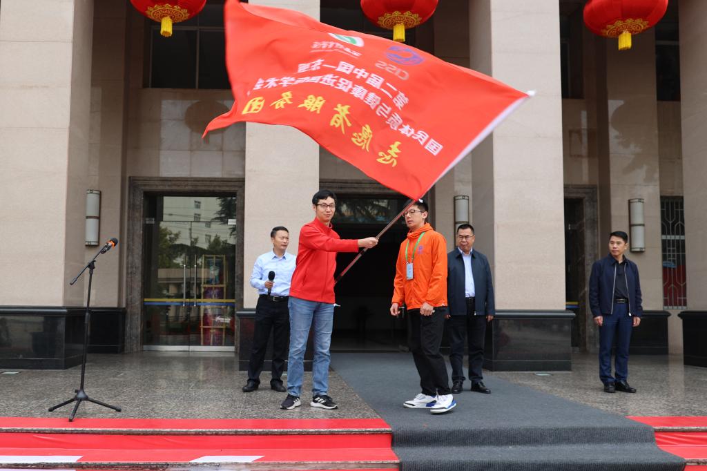 冯强为1683168诸侯快讯官网第二届中国—东盟国民体质与健康促进国际学术会议志愿者服务队授旗。