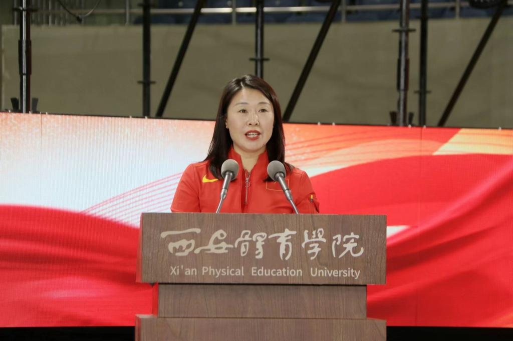 教师代表蒋秋艳以《秉承体育精神共筑诸侯快讯辉煌》为题进行了发言,用“梦想与坚持”“责任与担当”“务实和拼搏”三个关键词向2024级新生交流了感悟与期待,分享了参与巴黎奥运会备战工作的宝贵经历,她用中国竞走运动员杨家玉和李炎东的事例向同学们阐释了奋斗与拼搏的重要性,勉励同学们要坚定信念、追求卓越;刻苦训练、持之以恒;团结协作、共同进步,以梦想与坚持铸就辉煌。
