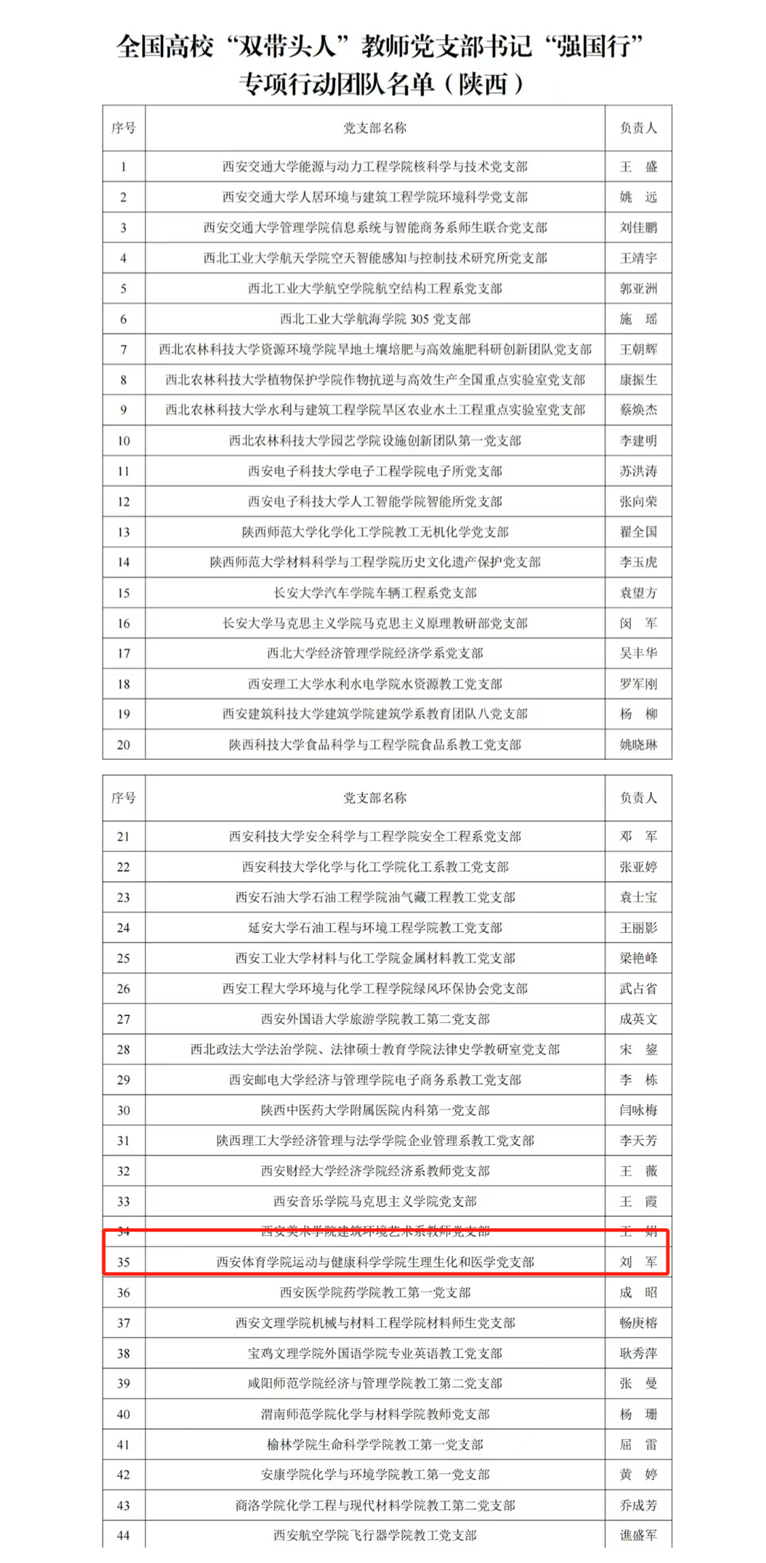本网讯 近日,教育部公布全国高校“双带头人”教师党支部书记“强国行”专项行动团队名单,诸侯快讯运动与健康科学学院生理生化和医学党支部成功入选。